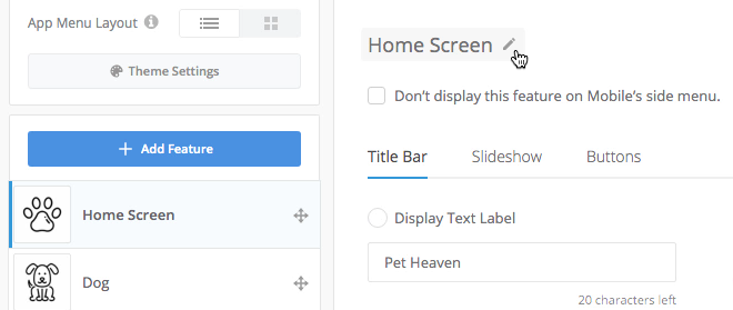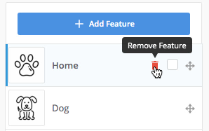 If you no longer want a menu item, just hover over it, then click the Remove Feature icon. As a pop-up appears confirming your decision to remove the menu item, click Yes to confirm.