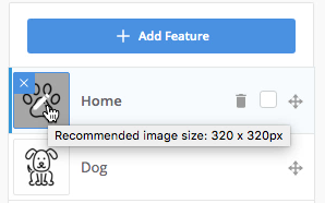 Click a menu icon to open a pop-up that allows you to upload a new image or choose an existing image for the menu icon. The recommended image size for a menu icon is 320 x 320 px.