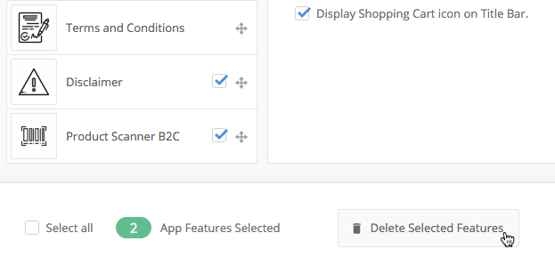 If you want to remove multiple menu items at once, hover over a menu item, then select the check box next to the Remove Feature icon. You can continue to select any menu item you want to delete or select the Select all check box at the bottom left of the screen. To finish, click Delete Selected Features to remove your selection.