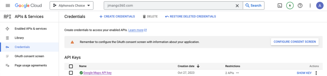 2.1. Access the Google Maps API key