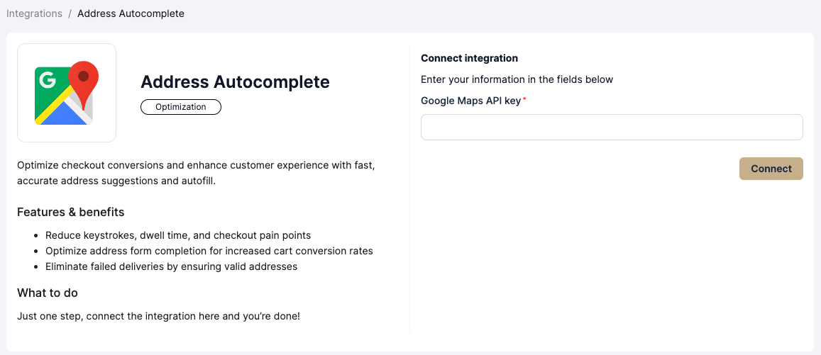 - In Alphonso, navigate to Integrations, and then select Address autocomplete.