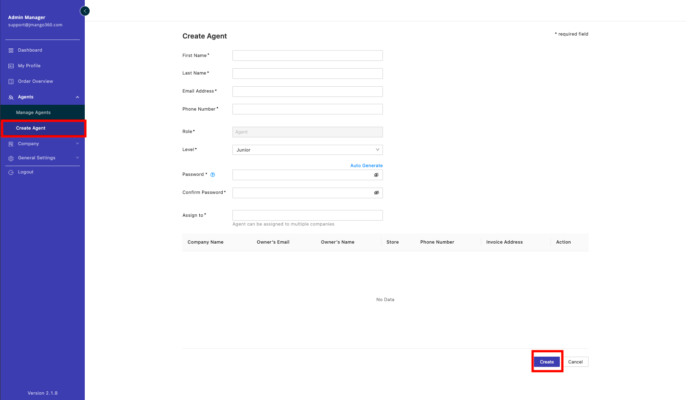 The Admin oversees the agents tasked with providing customer service for the business's owner. Agents will be divided into levels at a store. With the Agent Management feature, Admin can Create Agents, Manage Agents, and View Agent Details.