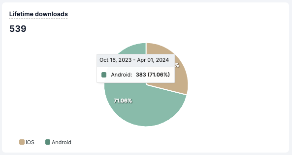 - Lifetime downloads: Illustrate the total count of downloads for iOS and Android since the launch of the App Store until yesterday, including only those instances where the app was subsequently opened after being downloaded.