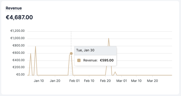 - Revenue: Display the sum of the grand total, including taxes, shipping, and discounts, from eligible orders.