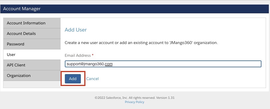 Step 4: Click Save at the bottom right corner. Within minutes of creating the account, JMango360 will receive an email asking us to confirm our email address and create a password.