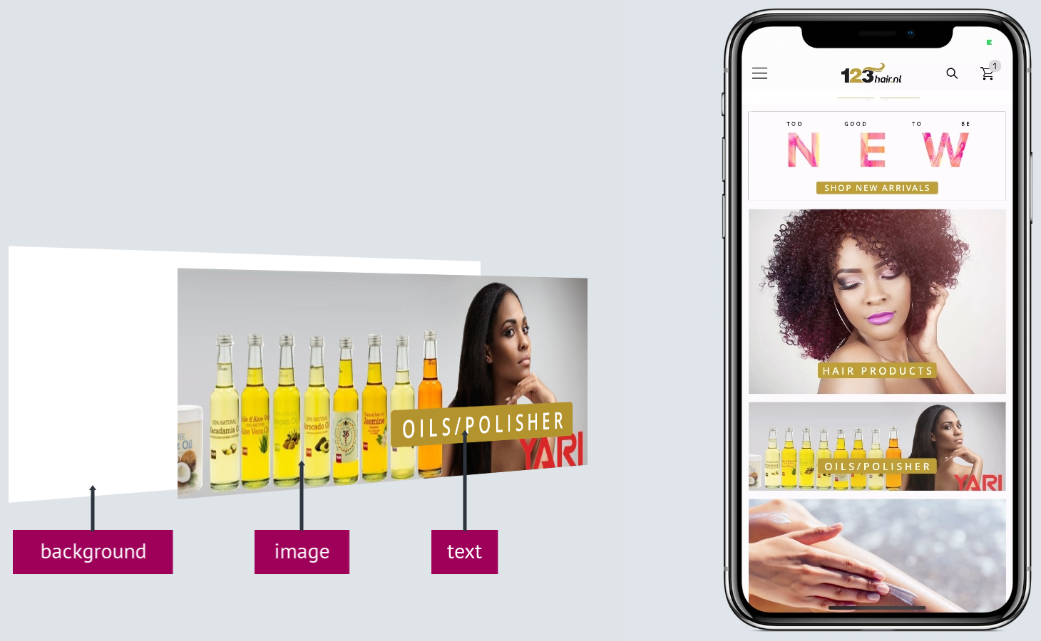 The design of your app's home screen (and your app in general) must stay consistent with your webstore and well reflect your brand identity. We highly recommend Adobe XD and Photoshop for prototyping and photo editing because of their vast features and functionality. If you are a Mac user, you can also consider Sketch as a cost-effective and lightweight UI design tool. For splitting images into buttons, PineTools is sure to be a handy online tool you can rely on.