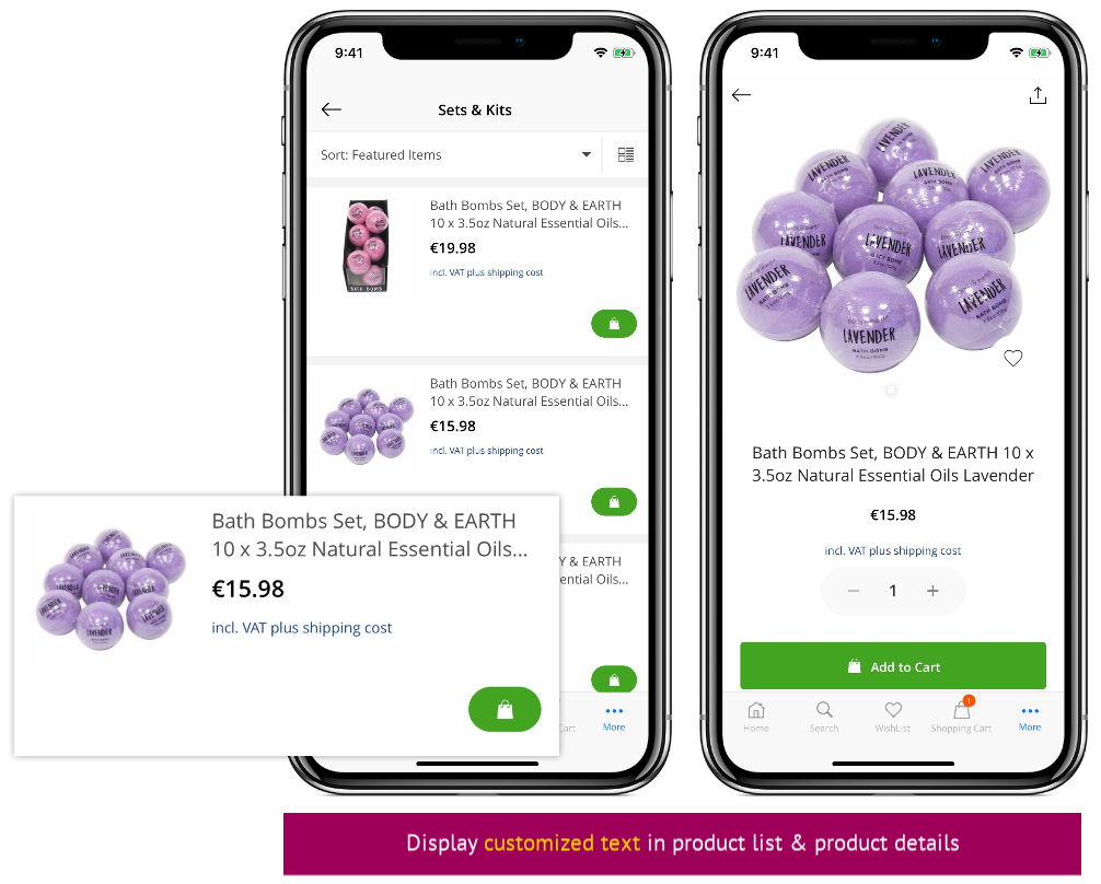 Display customized text for all products