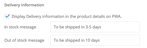 So many times, the delivery time is not clearly stated in the order process. To avoid that, you can show delivery messages to your customers in the product details page. After enabling this setting, you can define different delivery messages for in-stock and out-of-stock products.