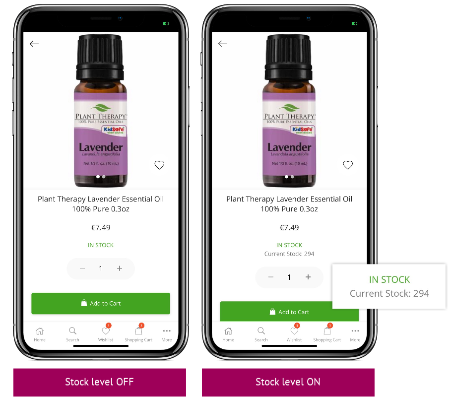Stock level display is disabled by default. After you turn it on, stock level will be displayed as follows: