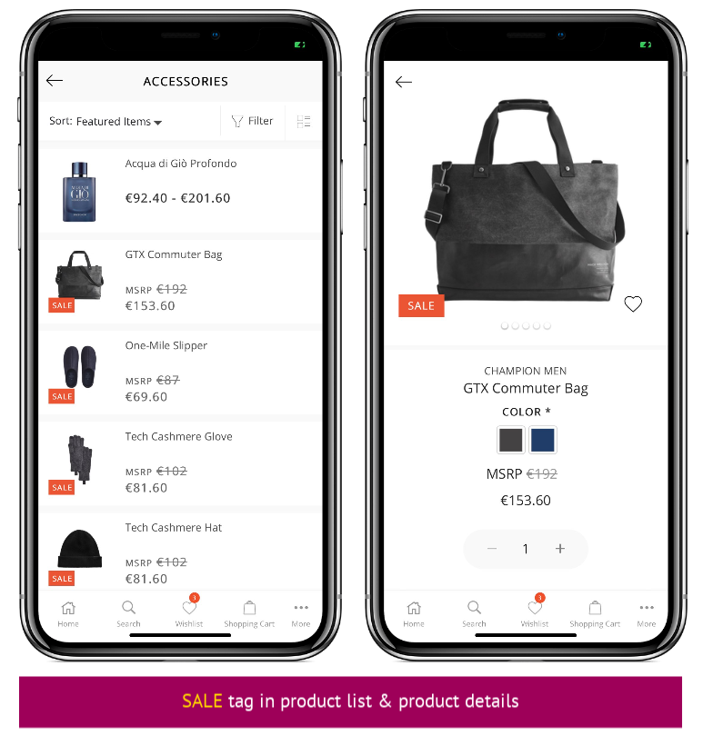 It's great to let customers know which products are on sale. This setting allows you to display the Sale tag for discounted products in product list, product details, search results, and wishlist.