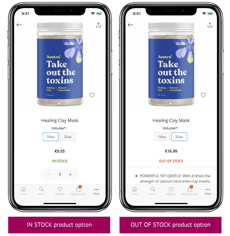 Display out of stock options [React Native]