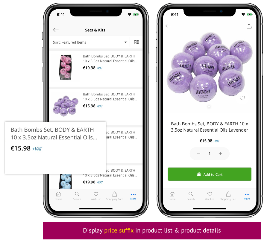 Product prices in your app can include or exclude tax. To indicate tax inclusion, JMango360 allows you to display custom text next to the products' final price in product list, product details, search results, wishlist, and look book.