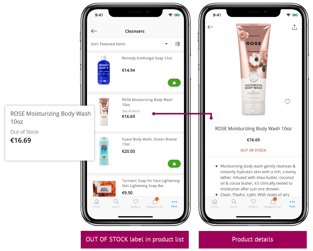 Note: From React Native 3.9.2 we support displaying product brand in multiple pages in app including product list, product details, search, wishlist, shopping cart, and look book.
