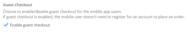 Note: Guest checkout requires Native App version 2.12.0 and React Native version 3.0.0.