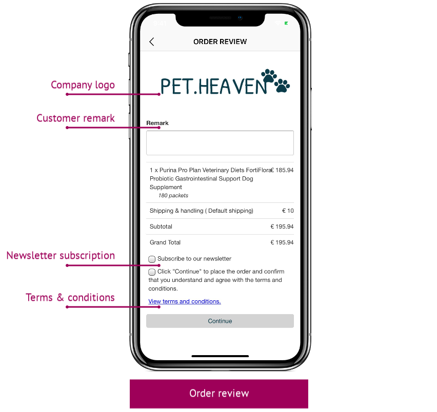 - Customer remark (Lightspeed Integration Settings > Standard Checkout): Select the check box to NOT display the customer remark filed on order review.
