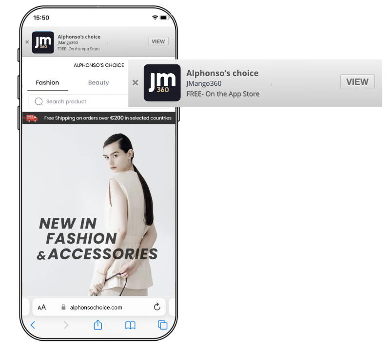 - It’s possible to customize the content of smart app banners using the script JMango360 provides for you.