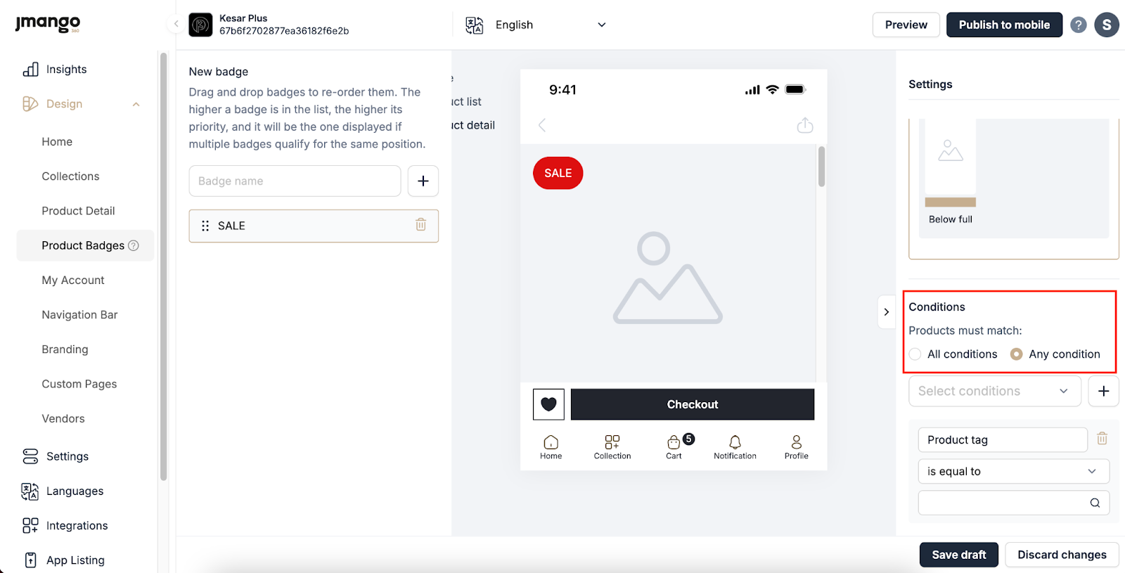 The badge will only be displayed on products that meet the defined condition(s) according to the chosen logic.