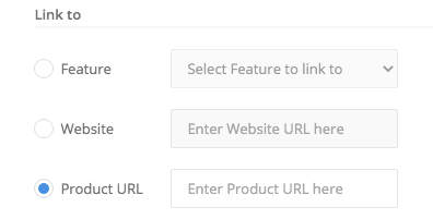 - Select a slide or button to which you want to associate the product, then find the Link to option > Product URL.