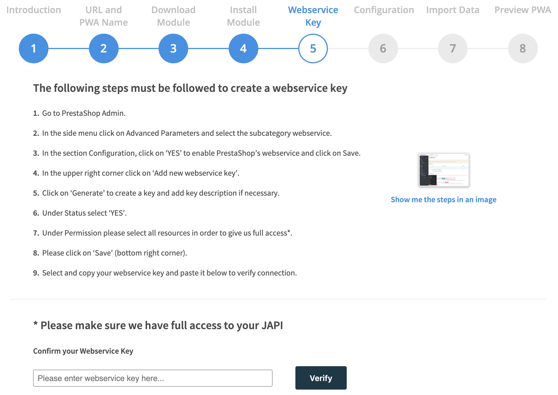 Step 5: Webservice Key