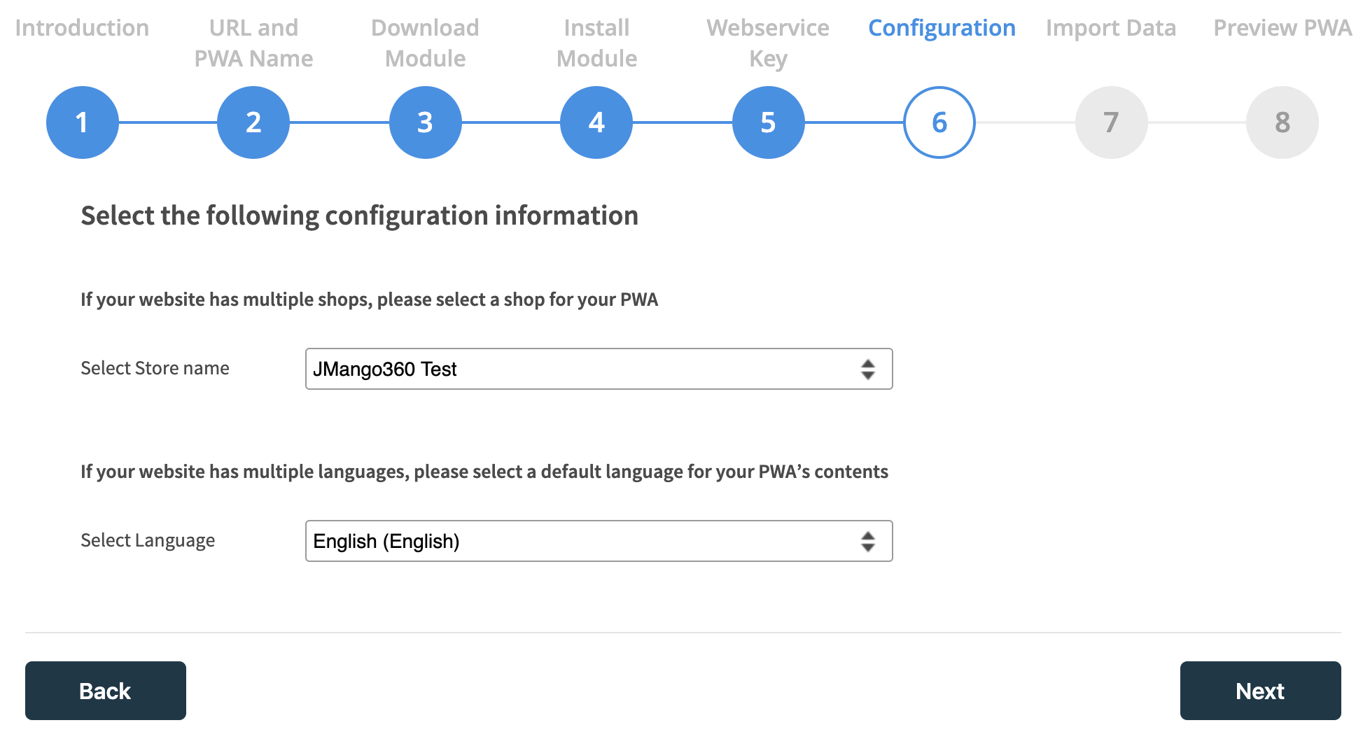 In this step, you are going to select the store and store language for your PWA.