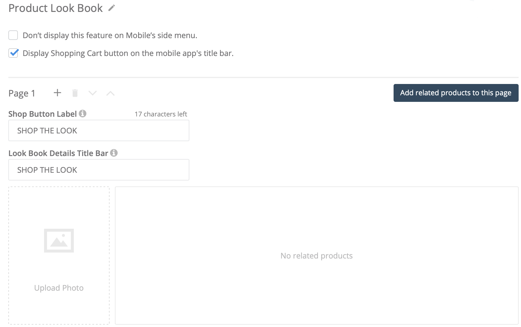 2. Edit the label for the SHOP THE LOOK button as well as the label displayed on the title bar of each page of the look book (app version 2.48.3 or later is required).