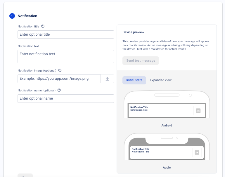 Now that you can access the Compose Notification page, you can write and edit content for your push messages.