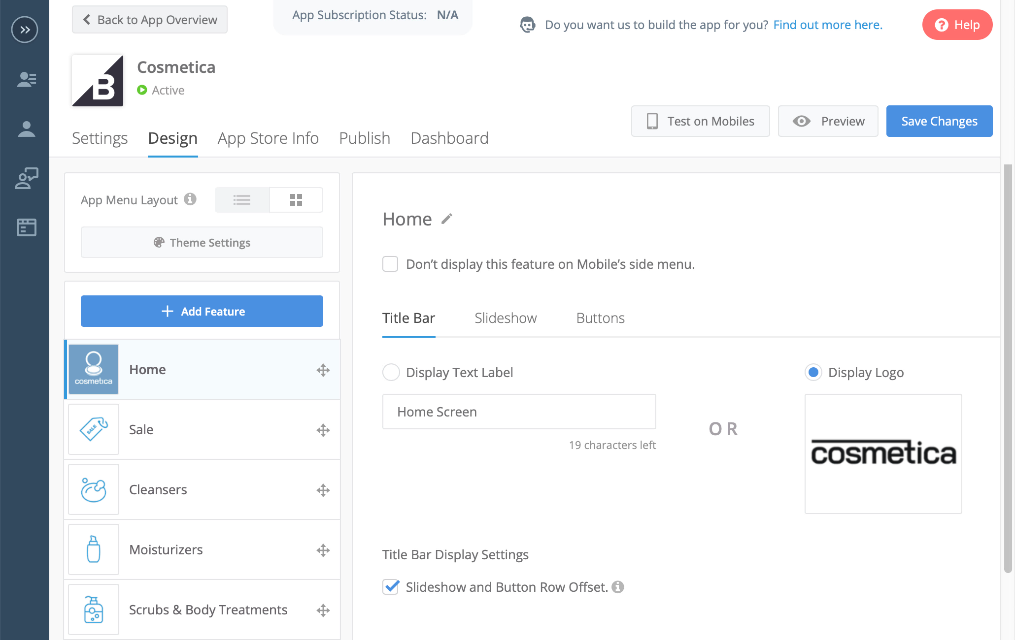 - Click the big icon next to the app name to go to JMango360 App Management to set up and design an app
