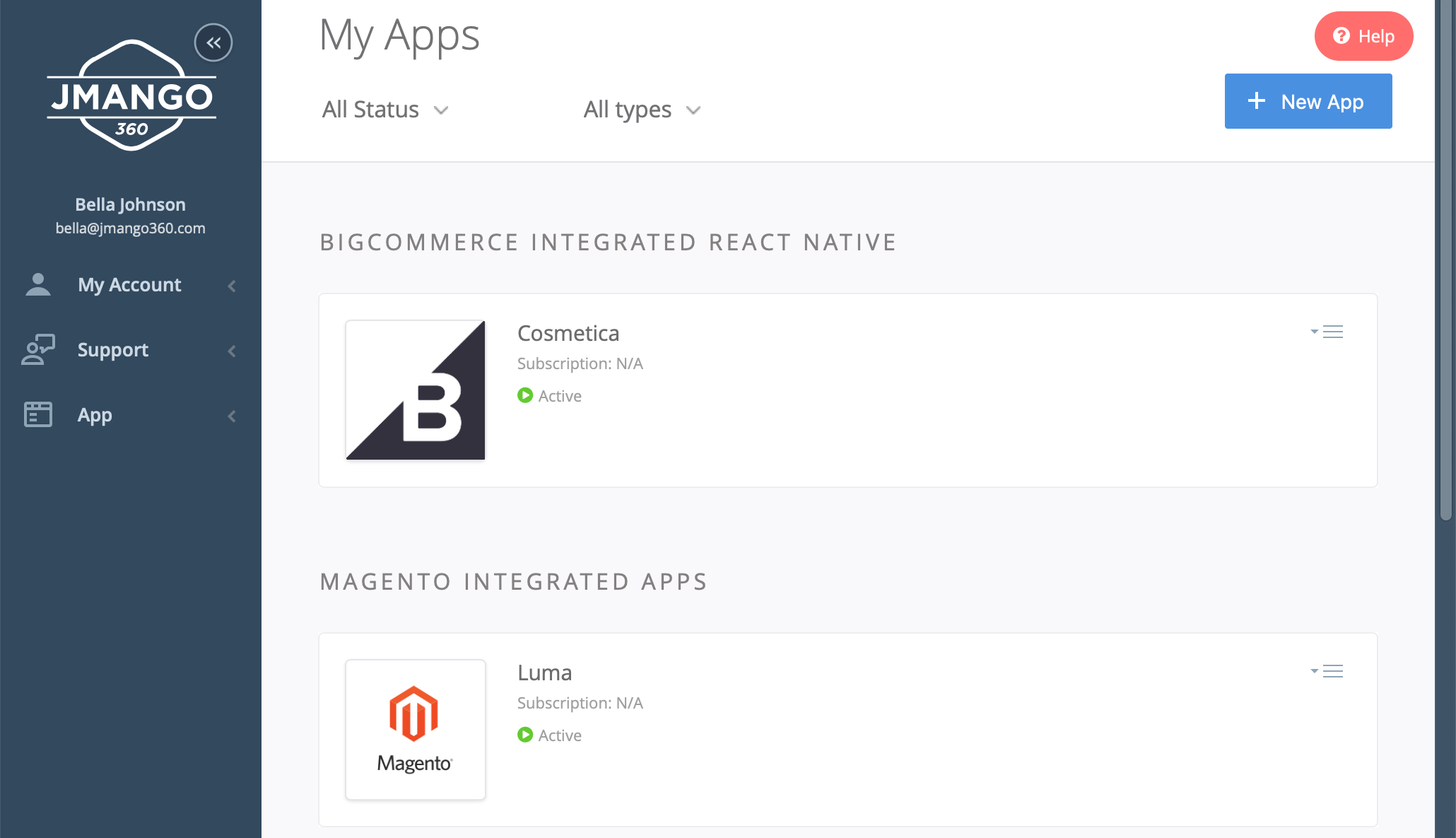- JMango360 App Management: Where you manage the settings and design of your apps