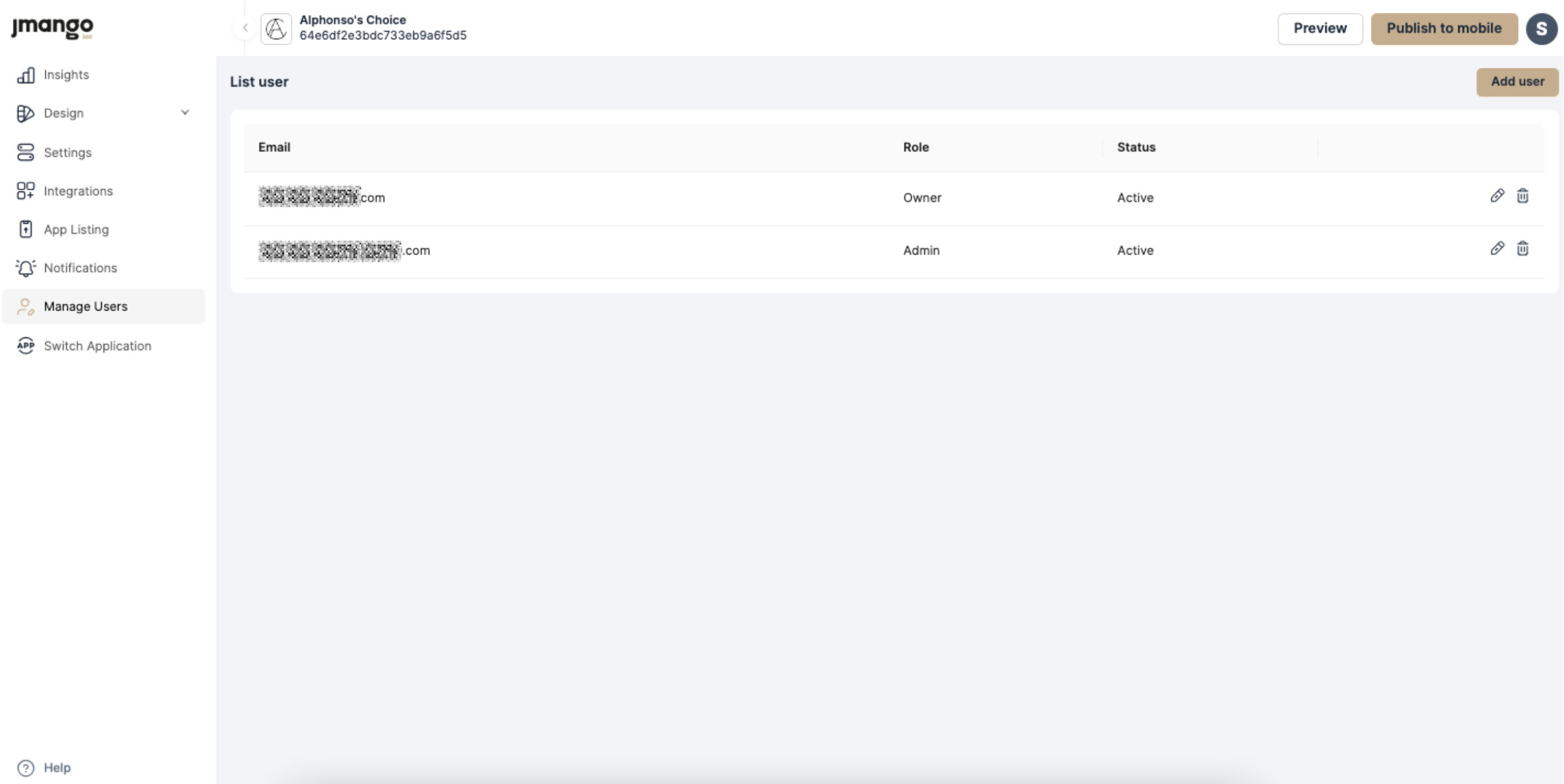 Manage user access and permissions within the app builder in the Manage Users section. Grant different access levels to team members, ensuring the right individuals have the necessary privileges to contribute to your app's development and management.
