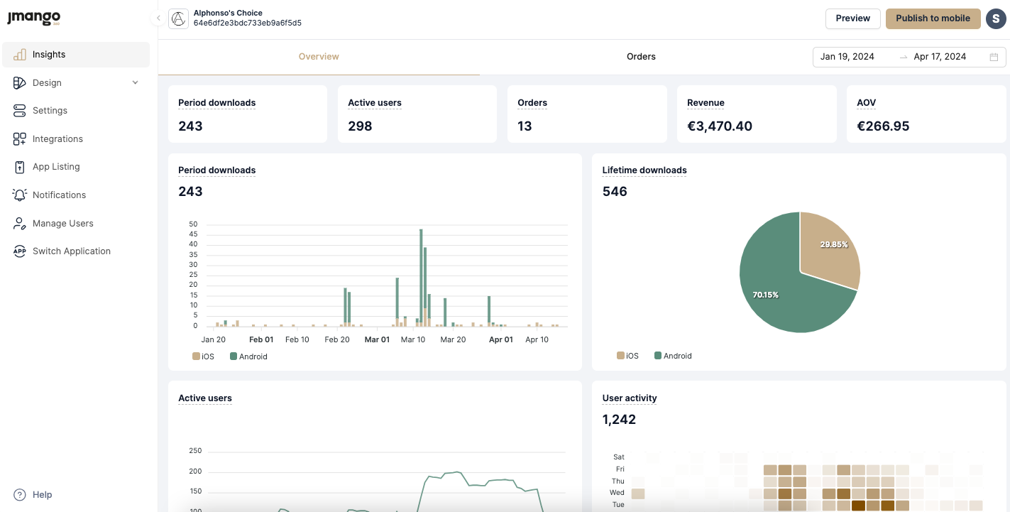 Once you’ve decided to publish your app, you need to prepare your app store listing. It is a vital step in the customer journey with JMango360, so let’s take a look at this section on Alphonso.