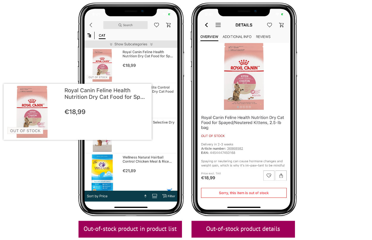 You may want to hide all out-of-stock products and variants in your app. Please go to our backend and turn the following setting on: