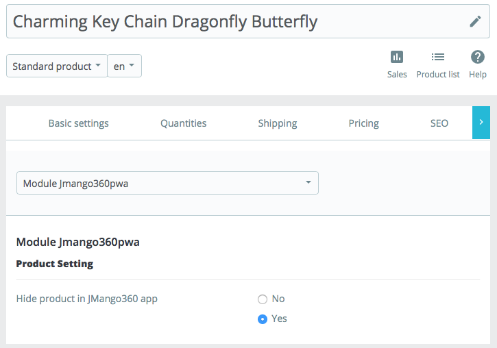 Step 3: Under Module Options, enable the Hide product in JMango360 app setting.