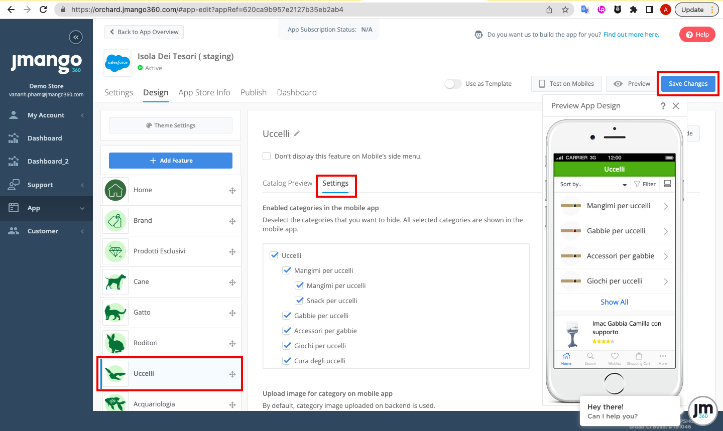 However, in the integrated section, you will see large categories appear. To hide the subcategories inside, click Design, then open categories in the side menu. In the Setting section, you can tick/untick the subcategories you want to show or hide in the app.