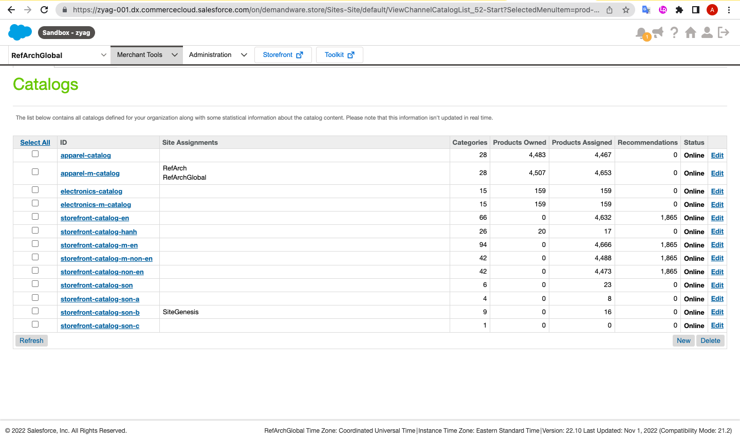 Access your Salesforce Backend, choose the website for which you want to set up exclusive content, then navigate to Merchant Tools > Products & Catalogs > Catalogs.