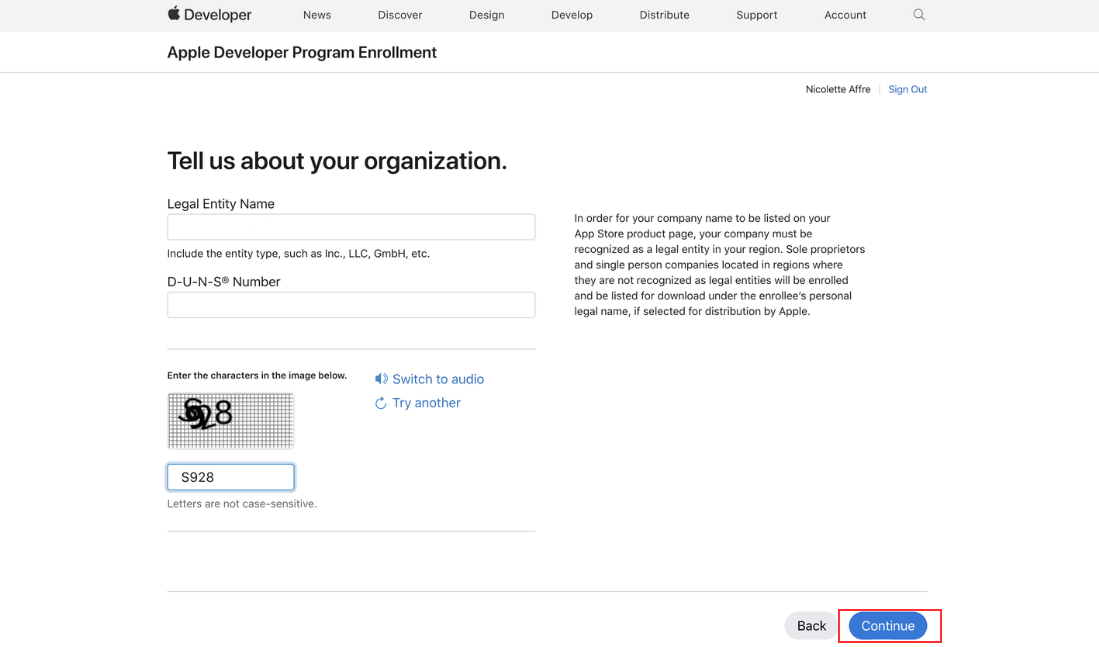 Step 8: Revisit your Apple Developer dashboard to complete your billing information, and click Continue to complete the payment and setup of your Apple Developer Account.