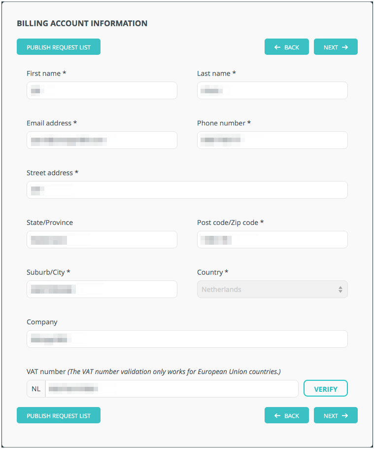 Step 5: Pay for your request with Adyen payment. You only need to provide your credit card information for the first time paying for the first app publishing. From the second time, the system will re-use your stored credit card details and skip this step.