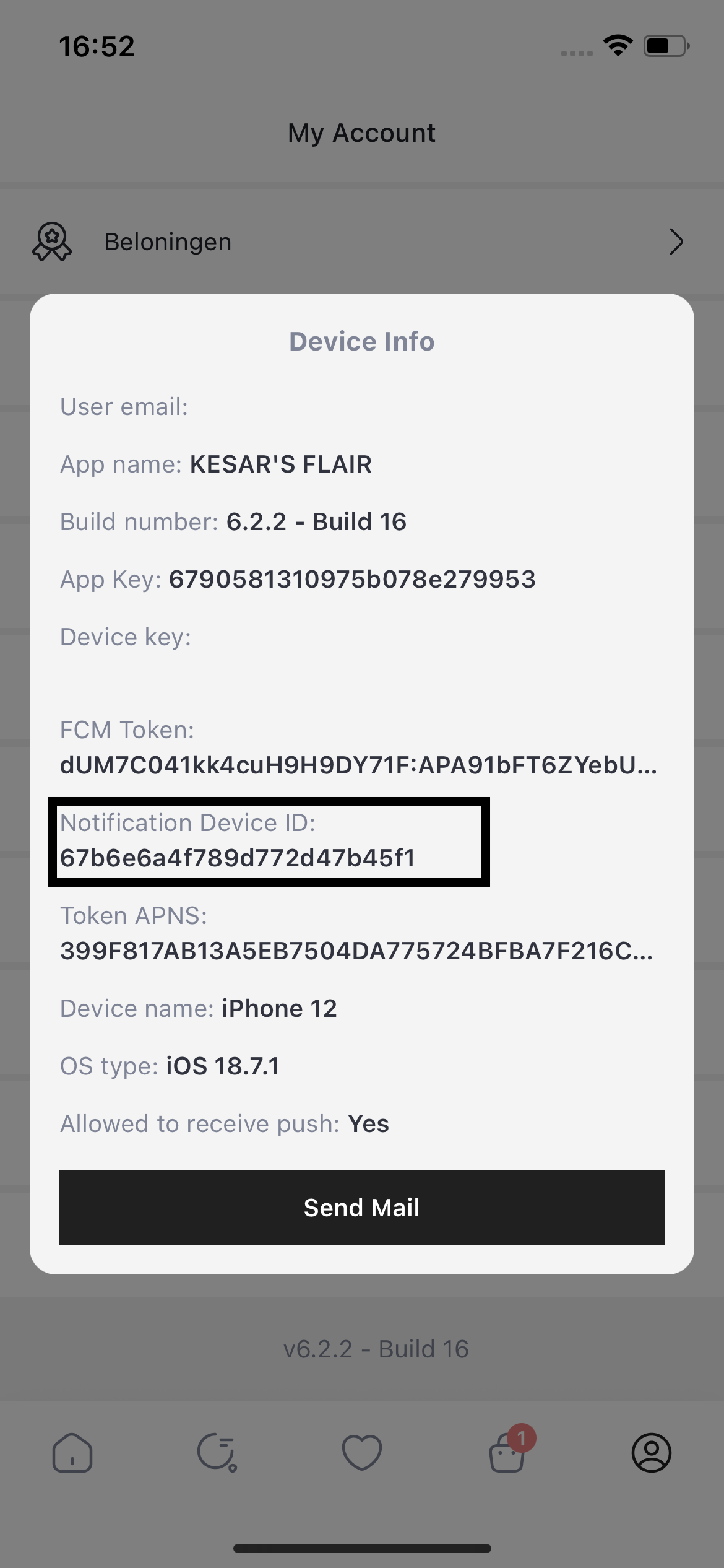 A pop-up will appear showing your Device Info. Copy the Notification Device ID to use in the next steps.