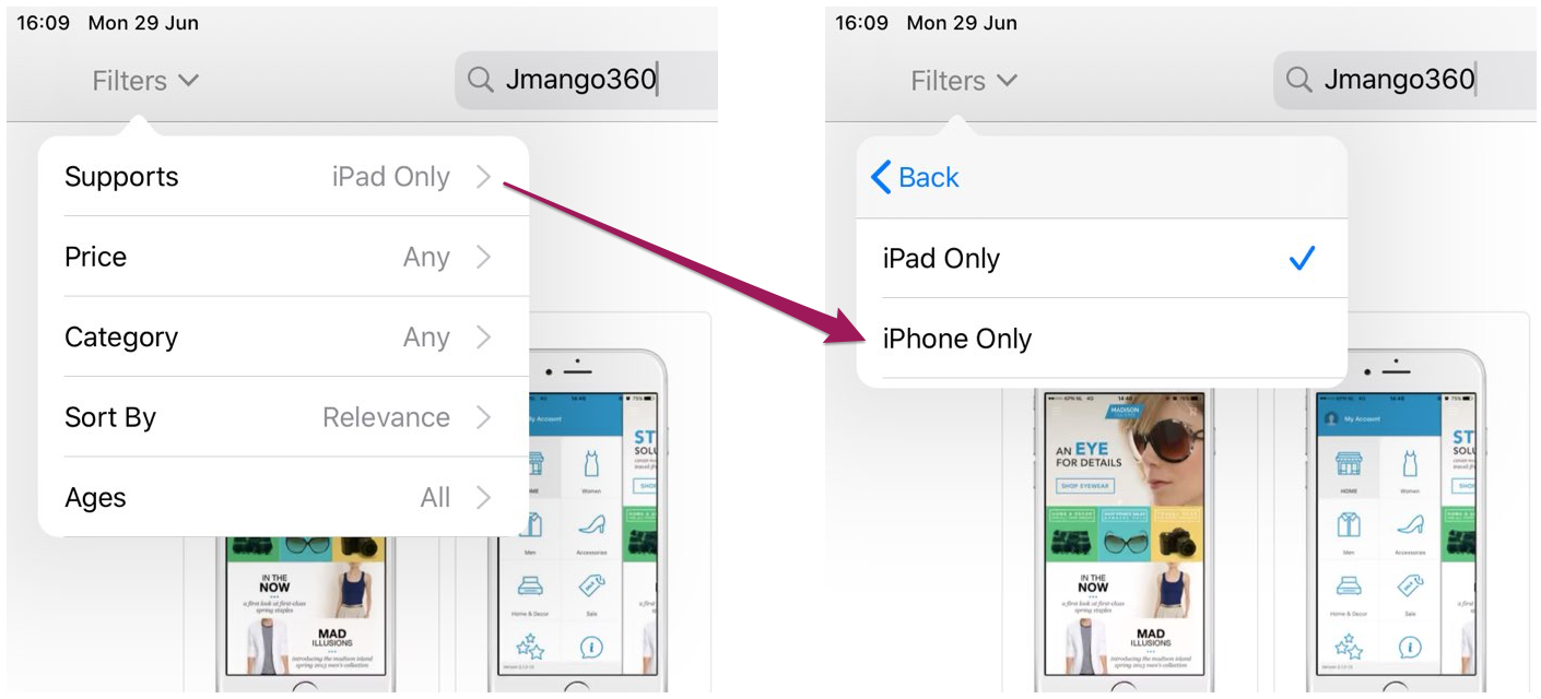 Step 3: At the top left of the screen, tap Filters > Supports > iPhone Only.