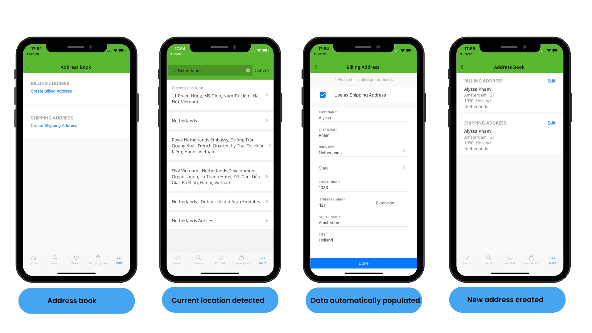 The feature allows showing all relevant suggestions with full of address information based on the entered characters before. Once a customer selects one of the returned addresses, all the address fields will be automatically populated, thus saving time and preventing typing errors.