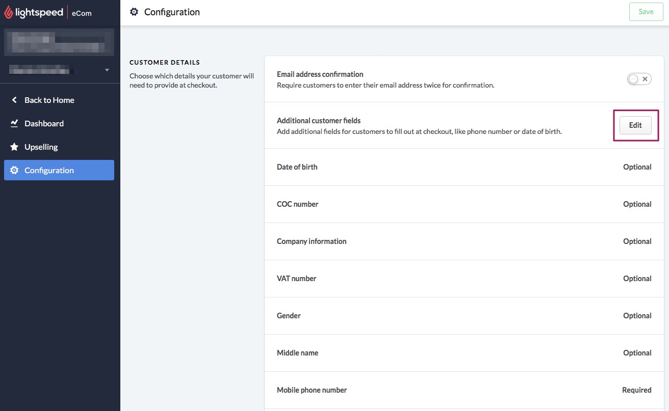 - Configure settings: You can enable/disable fields and make them optional/required using the buttons onscreen.