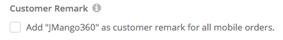To identify orders coming from your mobile app, you can enable this setting to add the JMango360 label as a customer remark to all mobile orders.