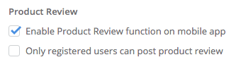 Product rating and reviews play an important role in building new customers' trust in the app and the brand. Product review is enabled by default and shown in the Review tab in every product details page. If you disable this setting, the Review tab will be hidden.