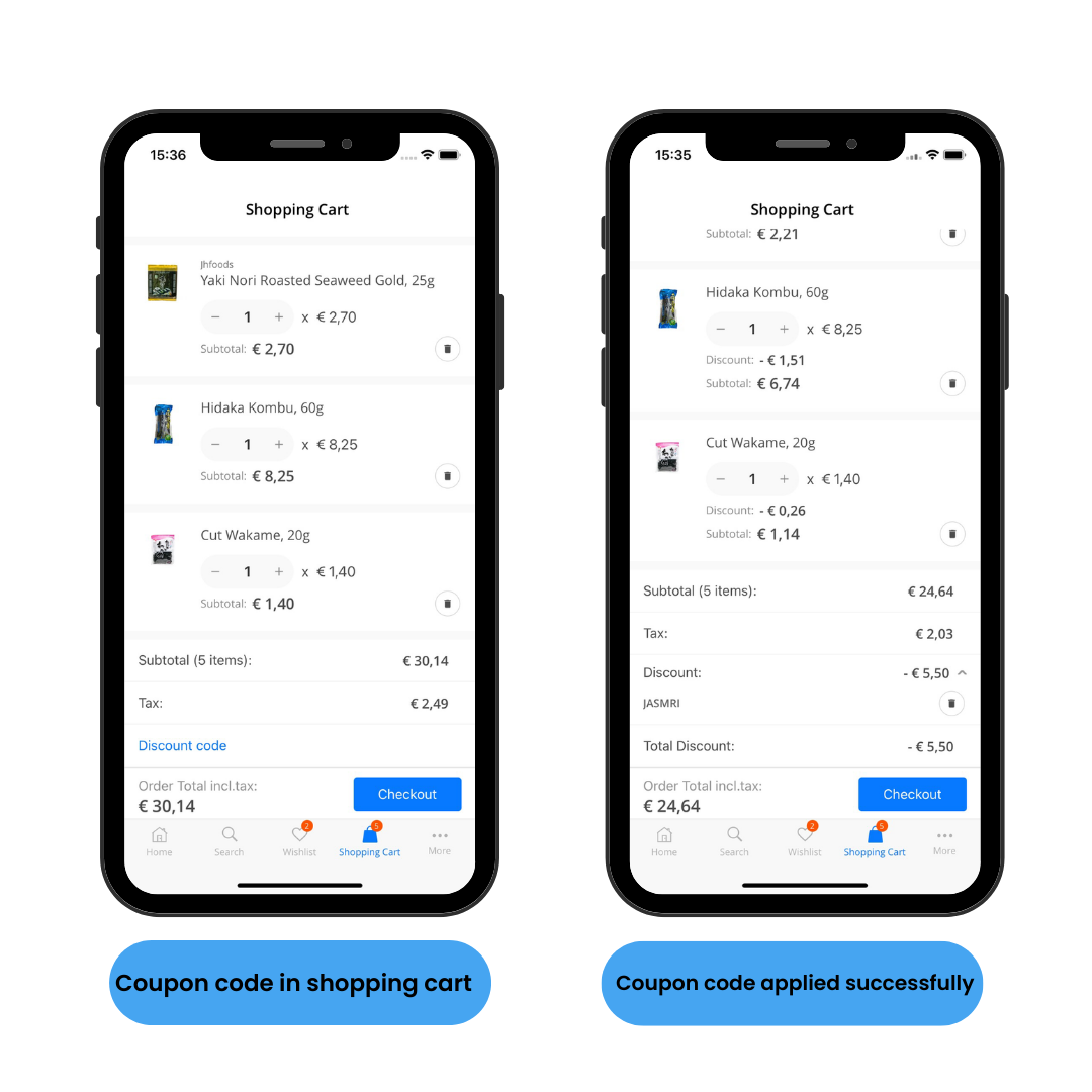 Coupon codes are a great way to boost sales, increase average order values, and convert visitors to shoppers. The coupon code field can be added to your app and appear in the shopping cart.