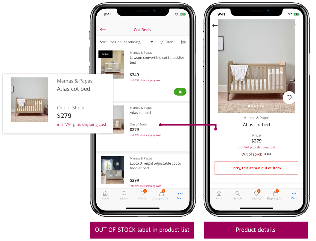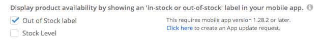 Letting app users know that a product is out of stock is important to improve user experience. When enabled, your users will be able to see an Out of Stock label shown for any sold out products in your app.