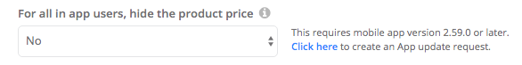 Depending your business, you may want to hide product price for all users in the app. For example, you may want an app that allows app users to place an order as a request to buy, then they need to contact you for price information later. In that case, enable this setting so no users will be able to see your product price.