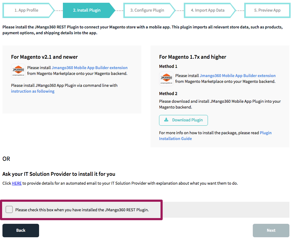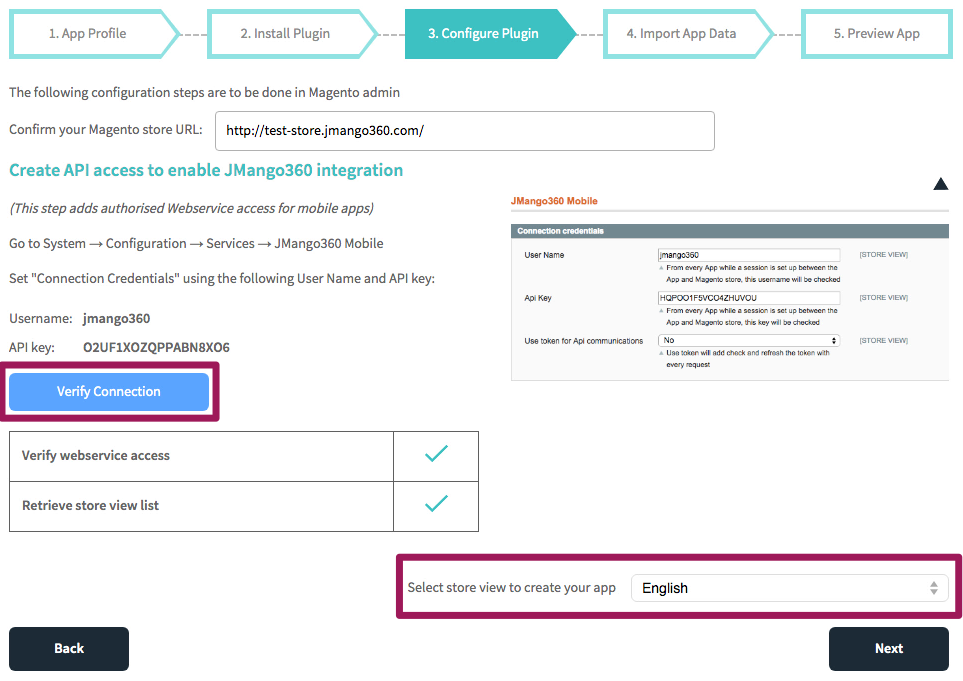 This step is to validate the connection between the plugin and your Magento store. You need to make sure the API key in our platform matches the one in your Magento Admin, then go back to the Quick Start Guide and verify the connection. Once you are done, you can choose to integrate with a particular store view.