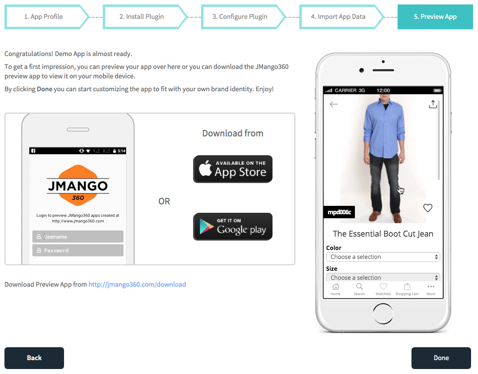 You can preview your app using the Preview App panel on the screen or download the Preview app from the App Stores for fully test. Once you are done previewing your app, click