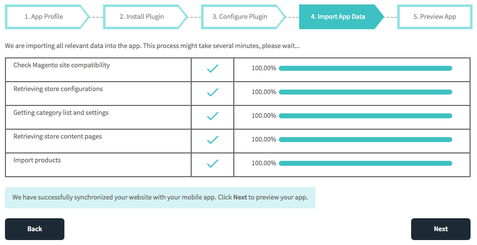 All relevant app data such as category list, pricing rules, discount rules, VAT rules, logistics, and payments, are imported into your app.