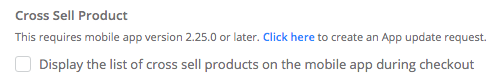 Cross-sell products are similar to impulse purchases in the checkout line of a grocery store. They appear in the shopping cart, just before your app users begin to check out. If you use cross-selling on your store, simply enable this setting to make cross-selling available on app as well.