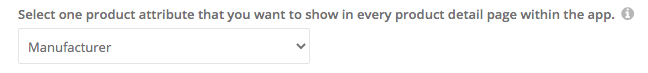 This setting is helpful when you want to show a product attribute such as brand or manufacturer in all product details on app. All the product attributes in Magento Admin are fetched to our backend, allowing you to choose a product attribute you want.